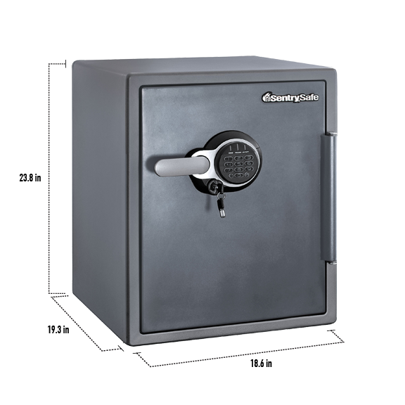 The SentrySafe SFW205GQC protects your important documents, digital media, and other valuables from fire, water, and theft. Dual digital lock with key, solid steel construction, pry-resistant hinge bar, and live locking bolts keep your items secure in the event of a break-in. The SFW205GQC also offers ETL Verified water protection and UL Classified fire protection for your irreplaceable items.