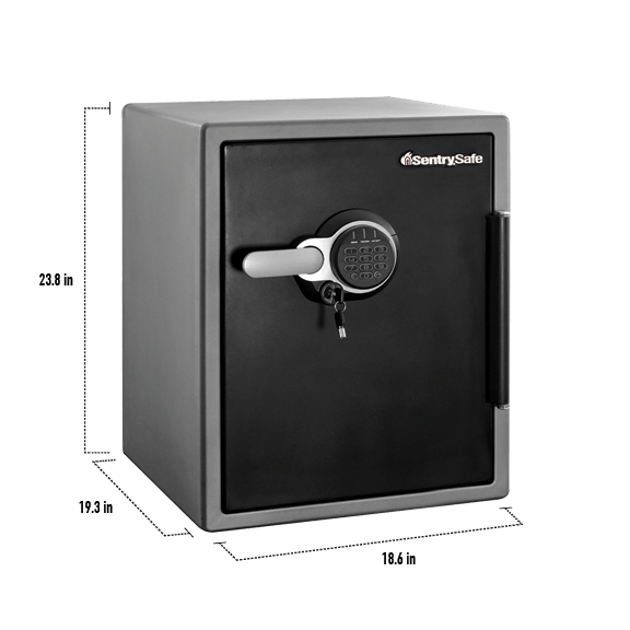 The XX-Large Water/Fire-Resistant Safe provides reliable protection for important documents and valuables. The safe includes backlit dual electronic lock with key, pry-resistant hinge bar and 6 large, 1-inch bolts so you can feel confident your most important items are protected.